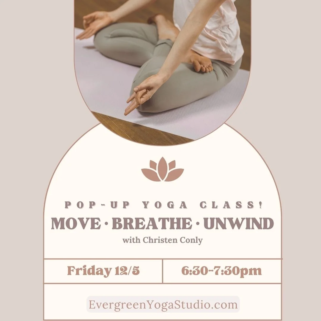 Recharge in this grounding pop-up class designed to melt and ward off holiday stress through intentional movement, soothing breathwork, and guided meditation for energetic clearing. Flow, release, and reconnect as you create space in the body and calm in the mind. Leave feeling lighter, centered, and restored for the season ahead. No prior yoga experience needed.